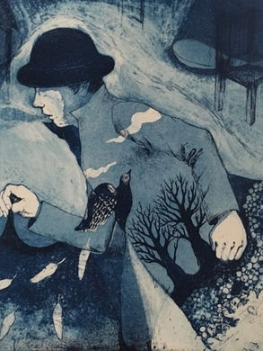 作家が、この”ものがたり”を手にしたのは、2015年のこと。4年の歳月の中で逡巡たる想いを経て、ようやく形になったという”え”たちは、その一枚一枚が文学性のある銅版画作品として語りかけてきます。